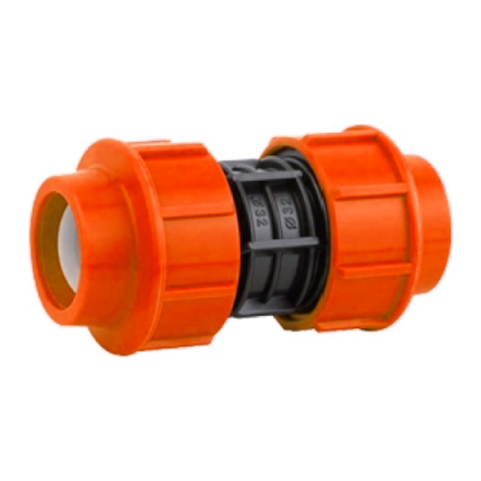 El enlace recto IRRIPLAST es un accesorio de compresión utilizado para unir de manera lineal dos tramos de tuberías del mismo diámetro, asegurando un flujo continuo y sin fugas.